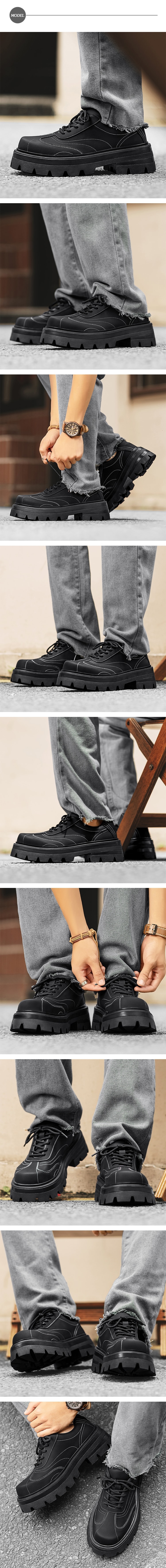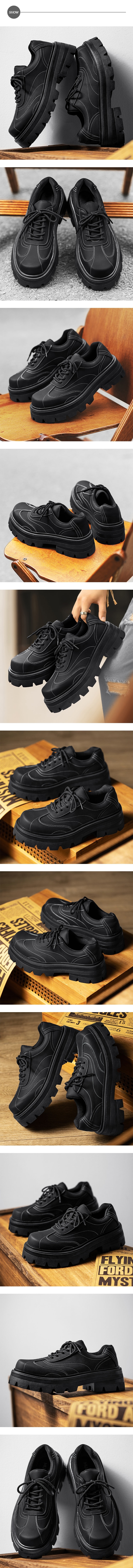 【KIRON】厚底時尚休閒鞋/時尚個性車線厚底粗跟休閒鞋 男鞋 黑