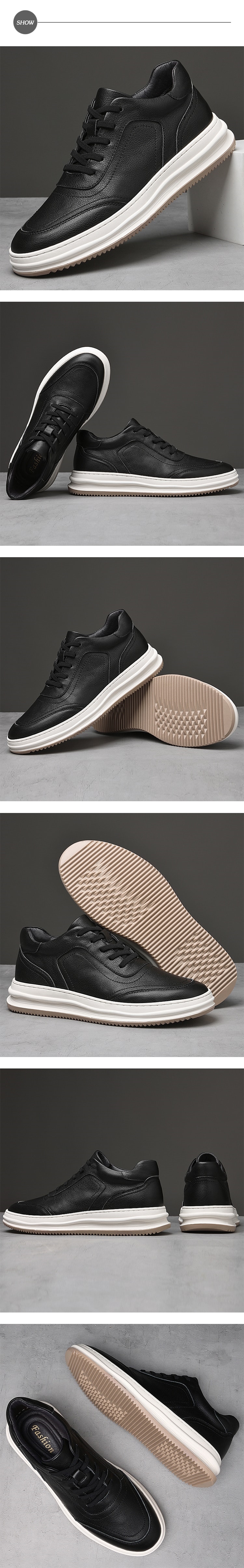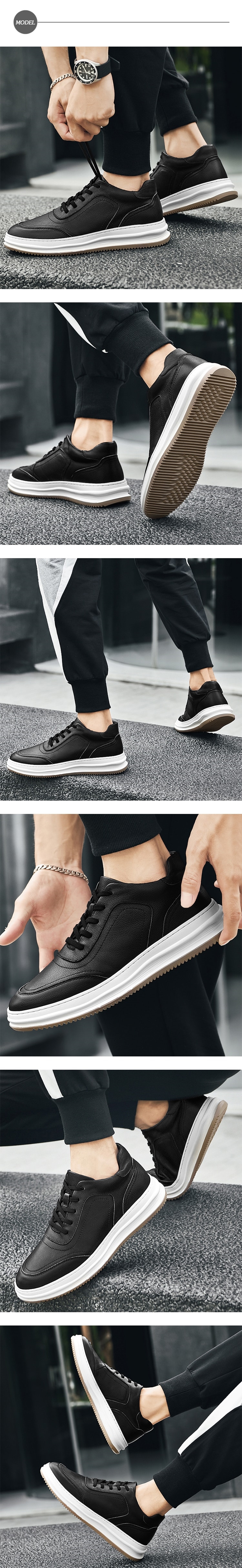 【KIRON】皮革拼接運動鞋/百搭時尚皮革拼接厚底運動鞋 男鞋 黑