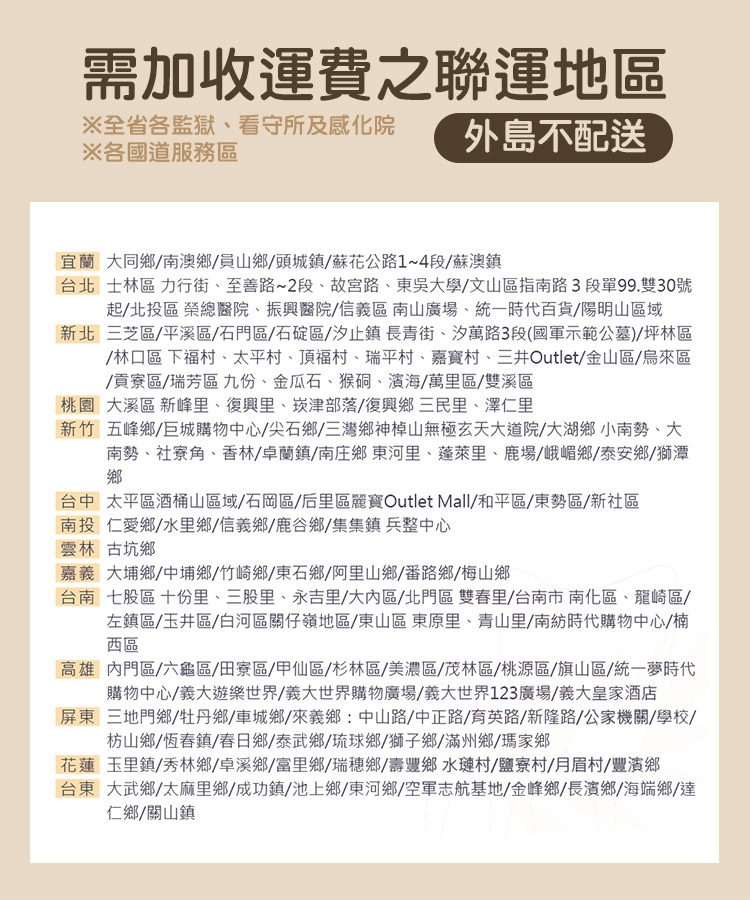 ※ 偏遠地區會加收聯運費,另外電聯報價