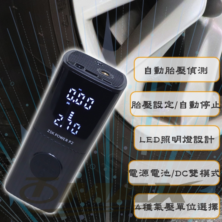2.可外接DC 12V車充供電打氣,在產品無電時,直接使用汽車點煙口供電,方便快速