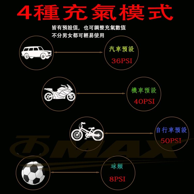 8.4種預設模式,適用於籃球、汽車等多種充氣需求。