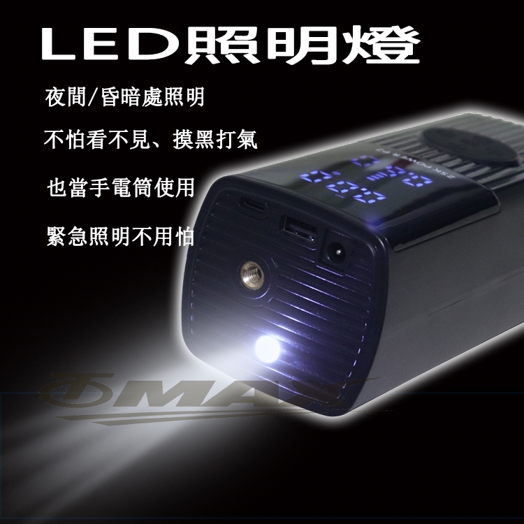 13.備有LED照明模式,夜間打氣一樣清楚,並附贈多款氣嘴,適合各種充氣用途。