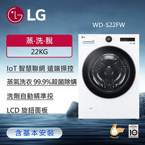 LG樂金 22公斤 Wi-Fi蒸氣變頻滾筒洗衣機LCD旋鈕面板 (蒸洗脫)(冰瓷白) WD-S22FW