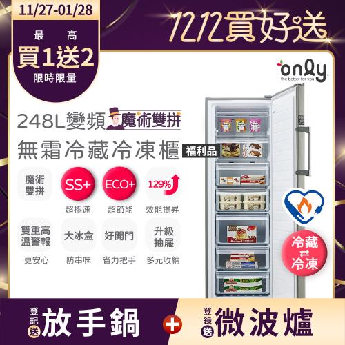 【農曆年前配送~倒數中!】only魔術雙拼248L變頻無霜冷藏冷凍櫃OU248-M06ZRI福利品(年菜預購.水產.團購.鍋物烤肉組囤貨)
