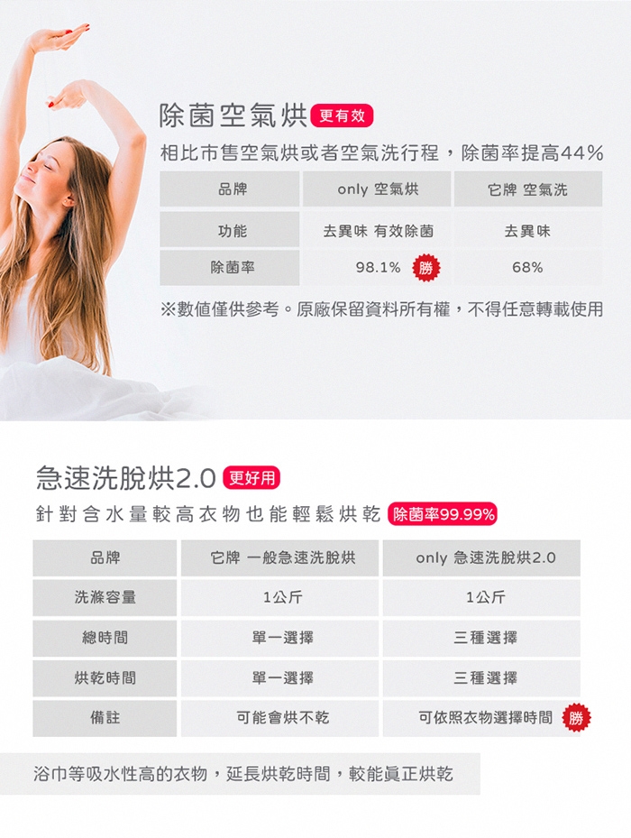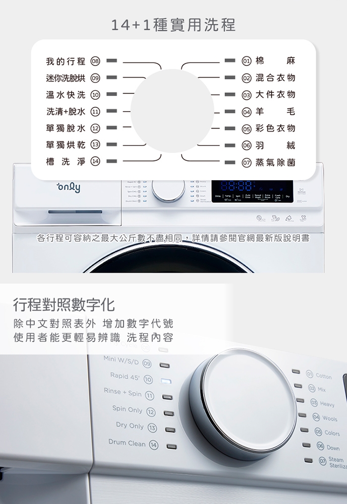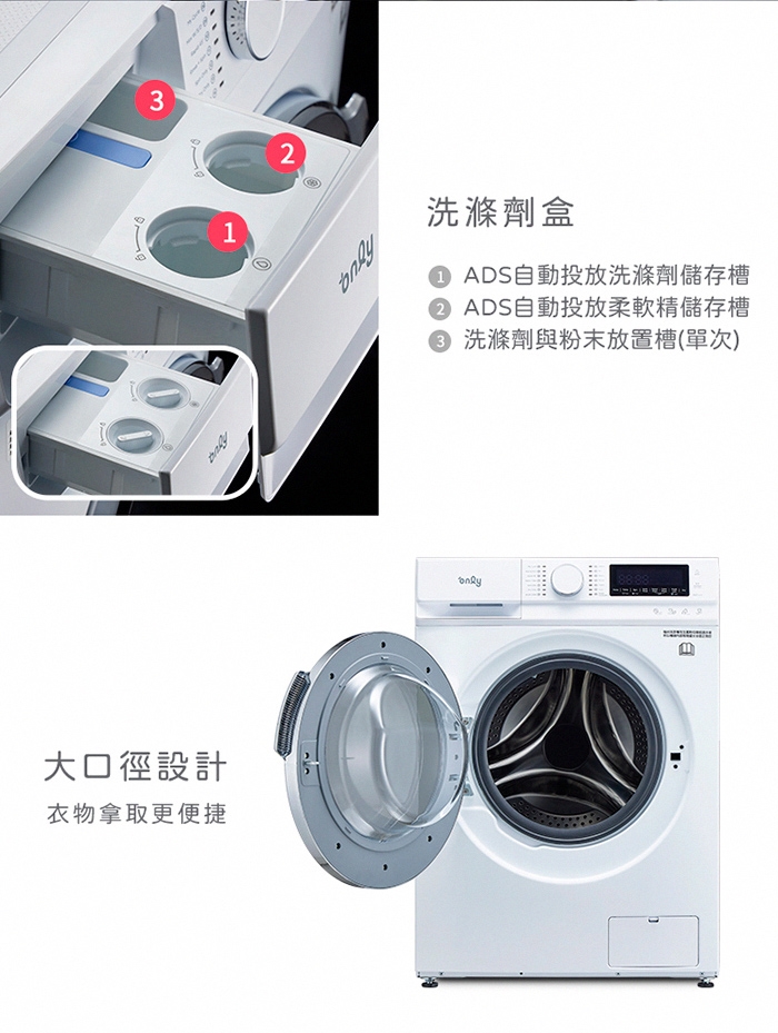 內建排水馬達,脫水及烘衣時,馬達都會進行排水動作。(排水方式不受限,擺放位置選擇更多元)