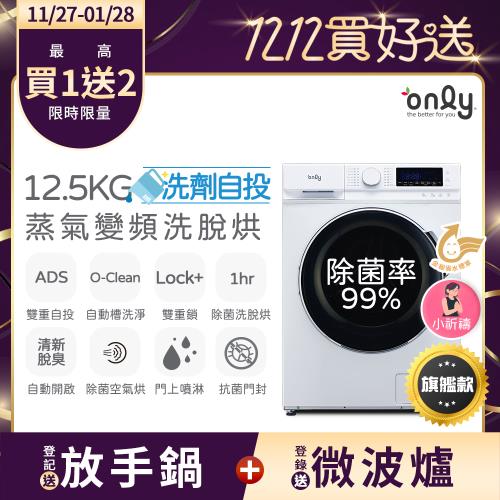 【最熱銷滾筒~搶先開賣】only小祈禱12.5KG洗劑自投洗脫烘洗衣機旗艦款OF13-M62UD白(省水12.5公斤變頻滾筒)