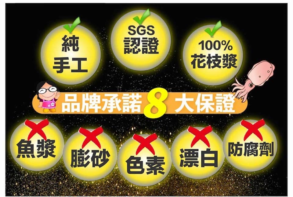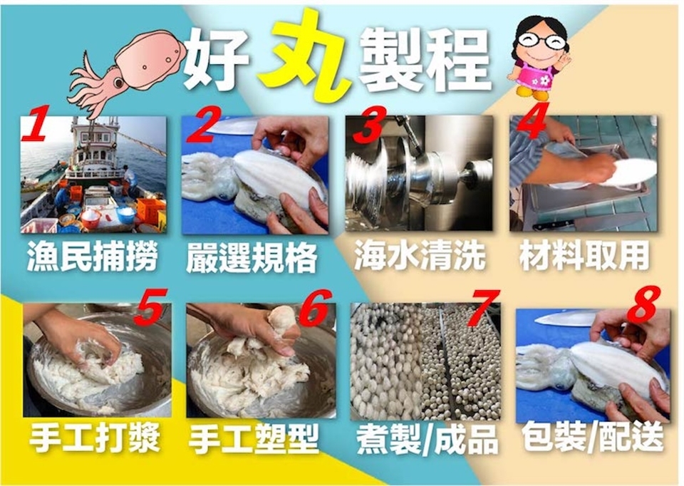 (1)花枝丸(300g±9g/包)x4包/ (2)切圈小卷(100g±4.5g/包)X4包(主商品開放切圈小卷體驗)