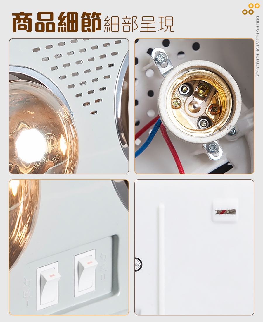 ●禁止將取暖燈安裝固定在插座下方,因為主機上方為散熱孔以免影響插座