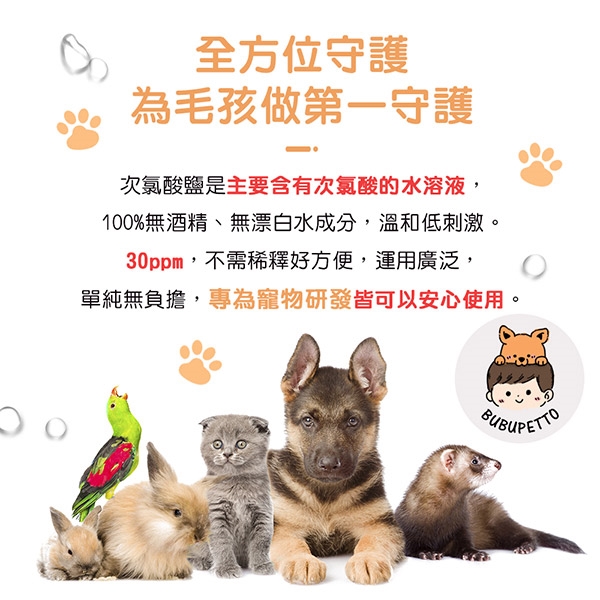 BUBUPETTO-毛孩衣物用免稀釋次氯酸水-商品特色