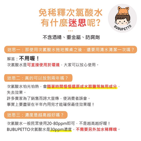 BUBUPETTO-毛孩衣物用免稀釋次氯酸水-迷思破解