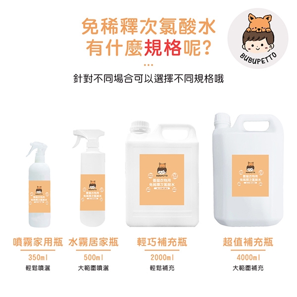 BUBUPETTO-毛孩衣物用免稀釋次氯酸水-規格說明: