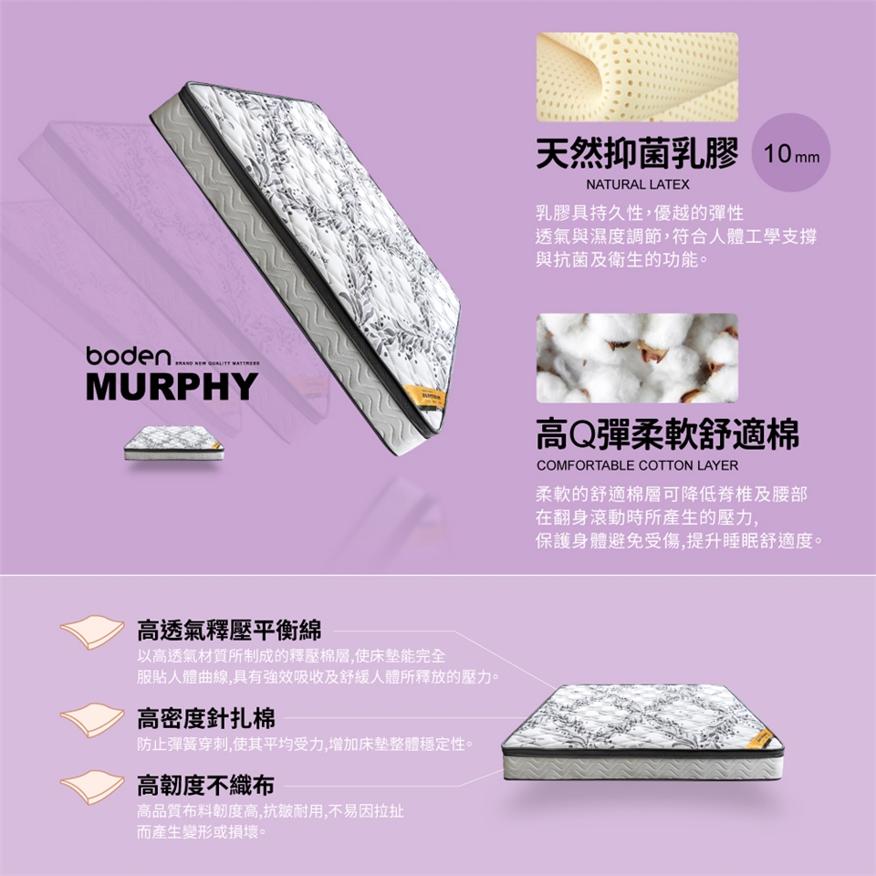10mm無毒天然乳膠,持久及優越的彈性,符合人體工學支撐與具抗菌及衛生特性!