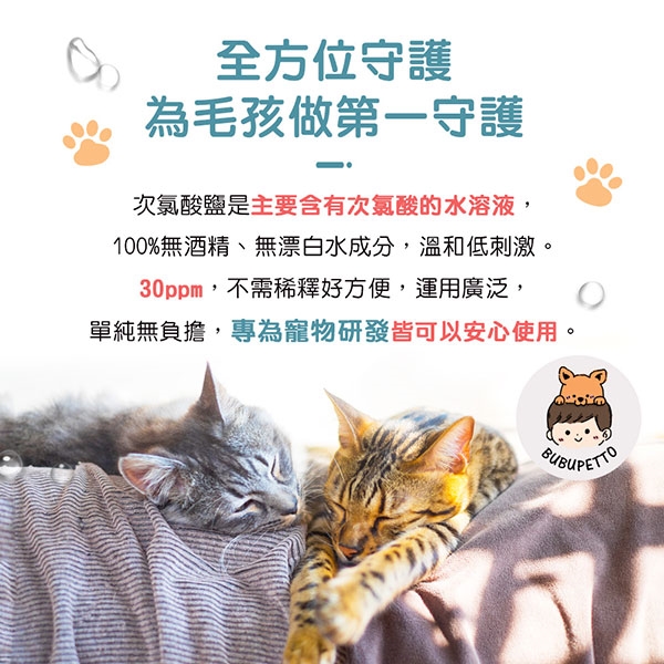 BUBUPETTO-貓咪環境清潔用免稀釋次氯酸水-商品介紹
