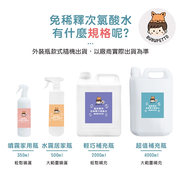 BUBUPETTO-貓咪環境清潔用免稀釋次氯酸水-規格說明: