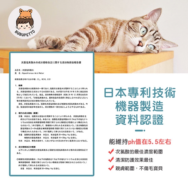 BUBUPETTO次氯酸水微酸性由日本機器調配,