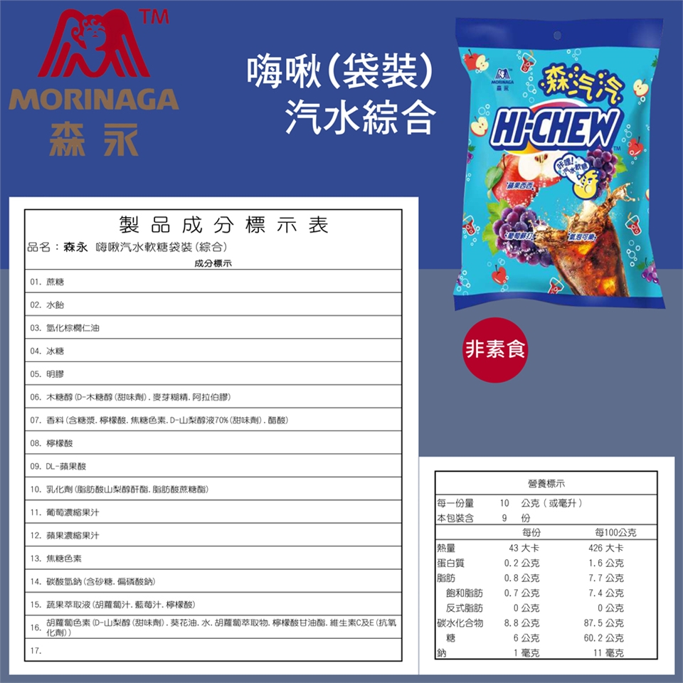 品名:森永 嗨啾軟糖袋裝(汽水綜合)