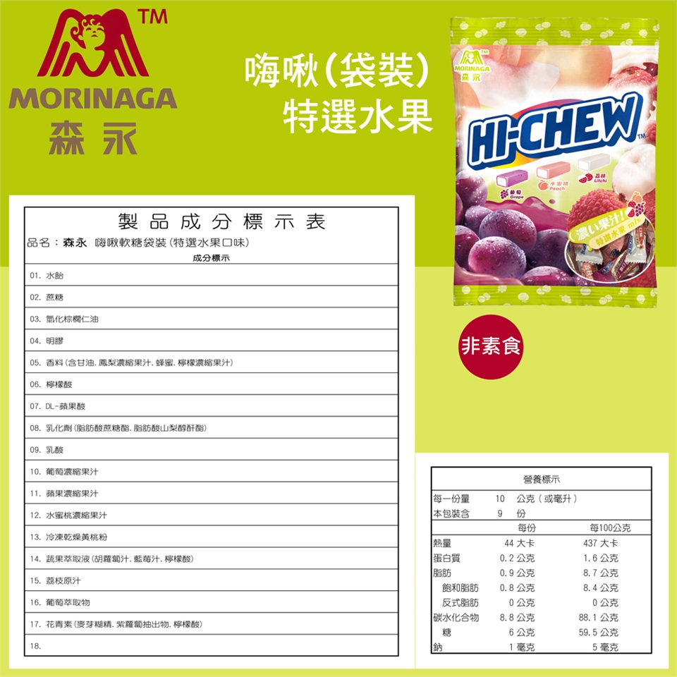 品名:森永 嗨啾軟糖袋裝(特選水果)