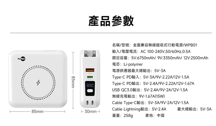 MyStyle第三代 MagSafe 多功能無線充電+自帶線行動電源+數顯充電頭PD快充大功率 +贈i12 Pro磁吸殼