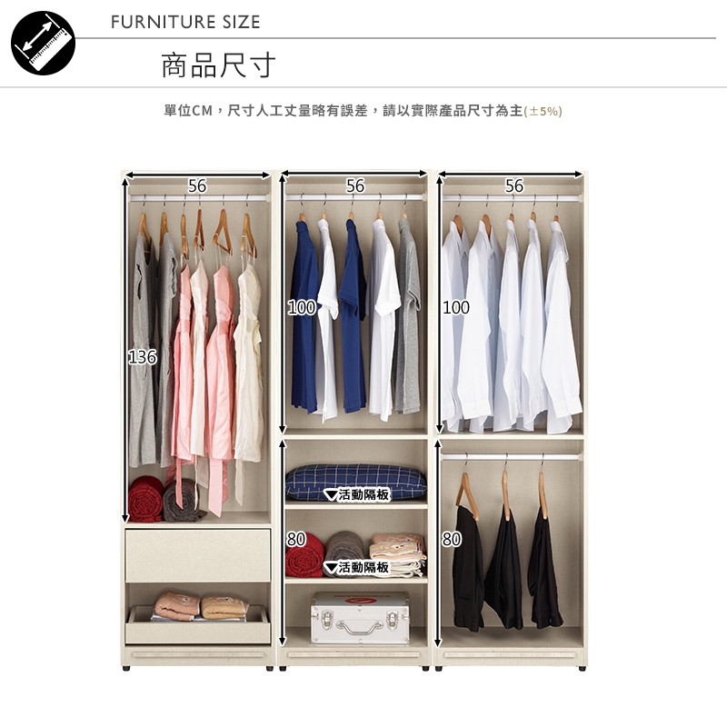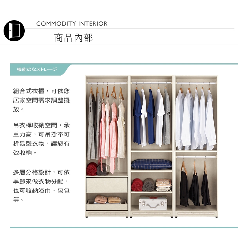 多功能組合式衣櫃,讓您靈活運用更完善,完整收納更便利!