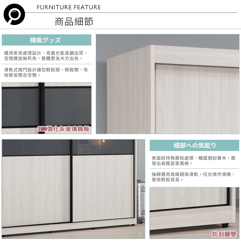 質感木紋搭配3mm強化灰玻璃飾板點綴,展現時尚品味!