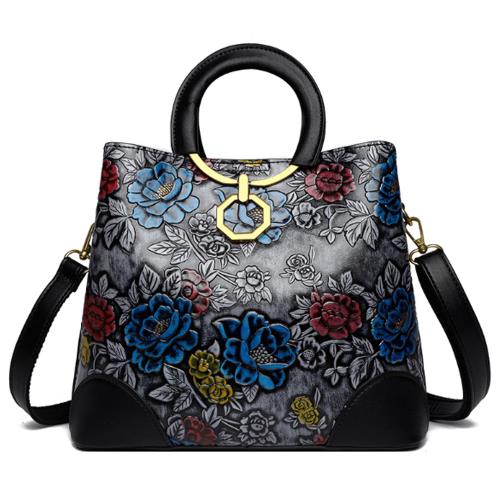 Jpqueen 滿版大氣牡丹壓花大容量 手提斜背包 側肩包 水桶包(4色可選)