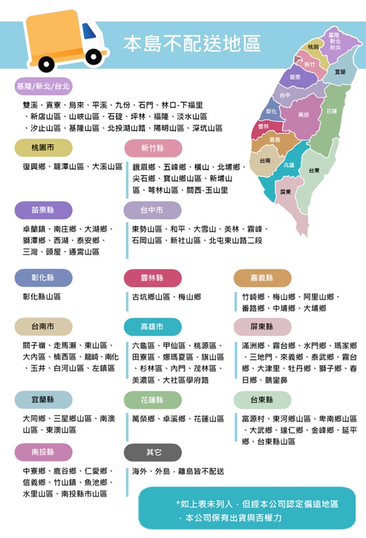 【注意事項】我們所提供的產品配送區域範圍目前僅限台灣本島。