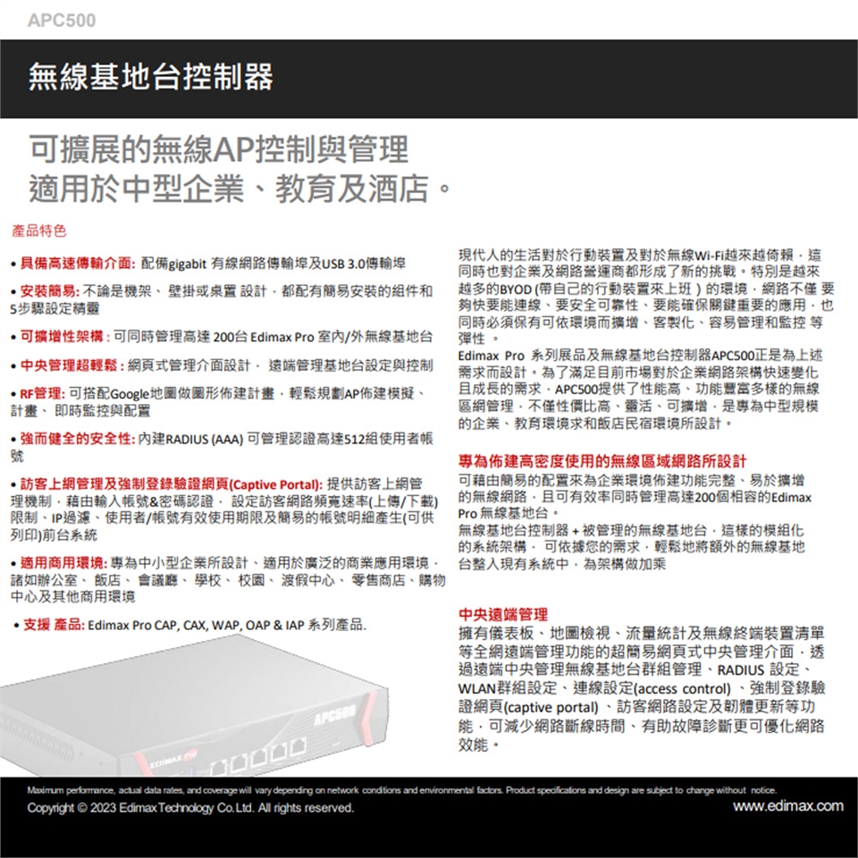 • 支援 產品: Edimax Pro CAP, CAX, WAP, OAP & IAP 系列產品.