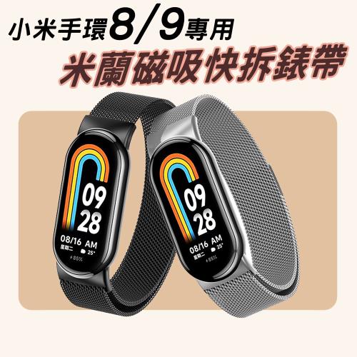 小米手環8/小米手環9米蘭金屬不銹鋼磁吸快拆錶帶腕帶