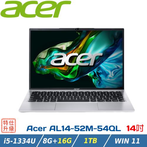 (規格升級)ACER宏碁 Aspire 14吋 文書筆電 AL14-52M-54QL 銀(i5-1334U/8+16G/1TB/W11/14)