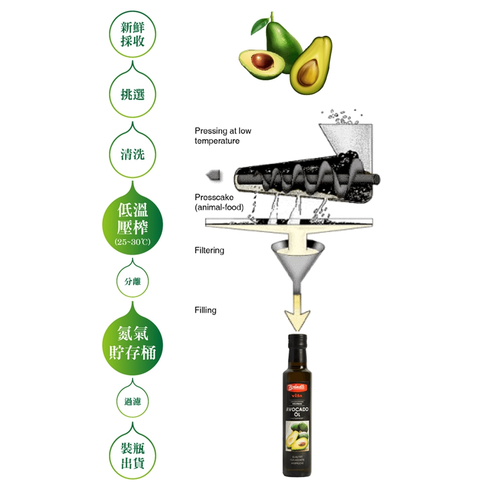以低溫25-30℃冷壓榨出油,保留酪梨天然的營養成分。