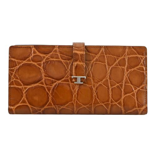 TODS T Timeless 質感網狀壓紋對開釦式零錢長夾.焦糖棕