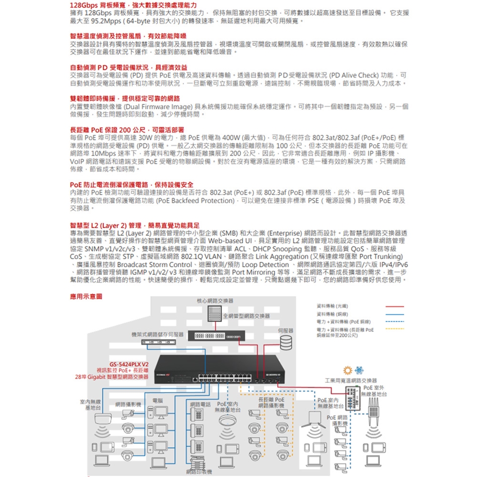 • 智慧 Layer 2 網路管理支援 SNMP v1/v2c/v3,