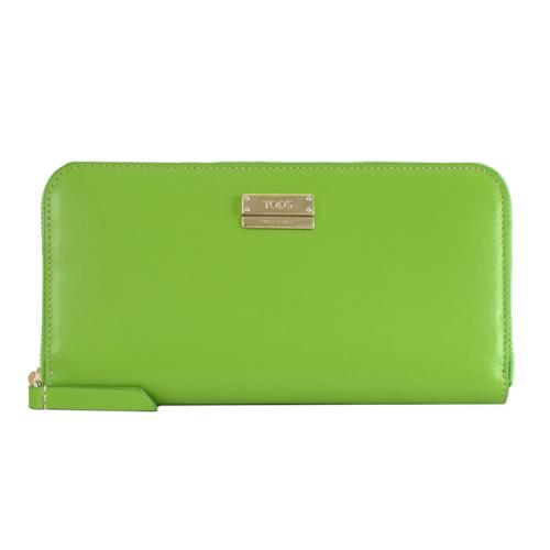 TODS 金屬LOGO滑面牛皮ㄇ字拉鍊長夾.草綠色