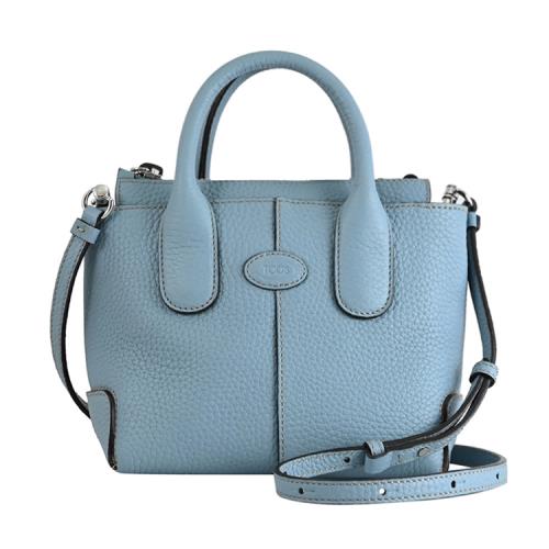 TODS Di Bag Mini 皮標LOGO質感牛皮壓紋兩用包.淺藍