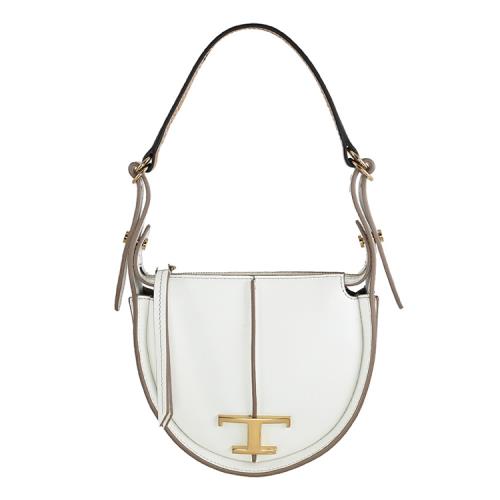 TODS T Timeless 金屬LOGO小牛皮單肩/小提包.白