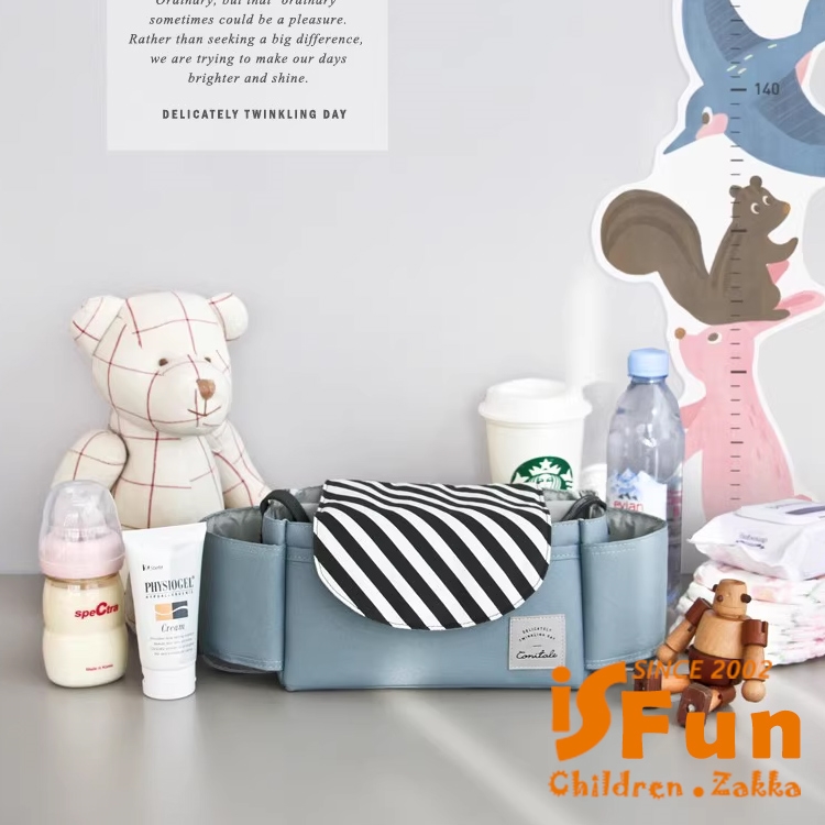 多功能嬰兒推車收納掛袋,精選棉麻材質,防水又耐磨。