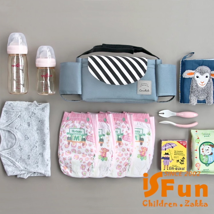 加大容量,可存放寶寶物品、奶瓶、濕紙巾、尿布等。