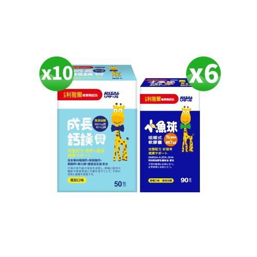 【小兒利撒爾】小魚球90粒x6瓶+成長鈣鎂50包x10盒(好吸收-濃縮TG型鱈魚油、補鈣+補鎂+護齒配方)