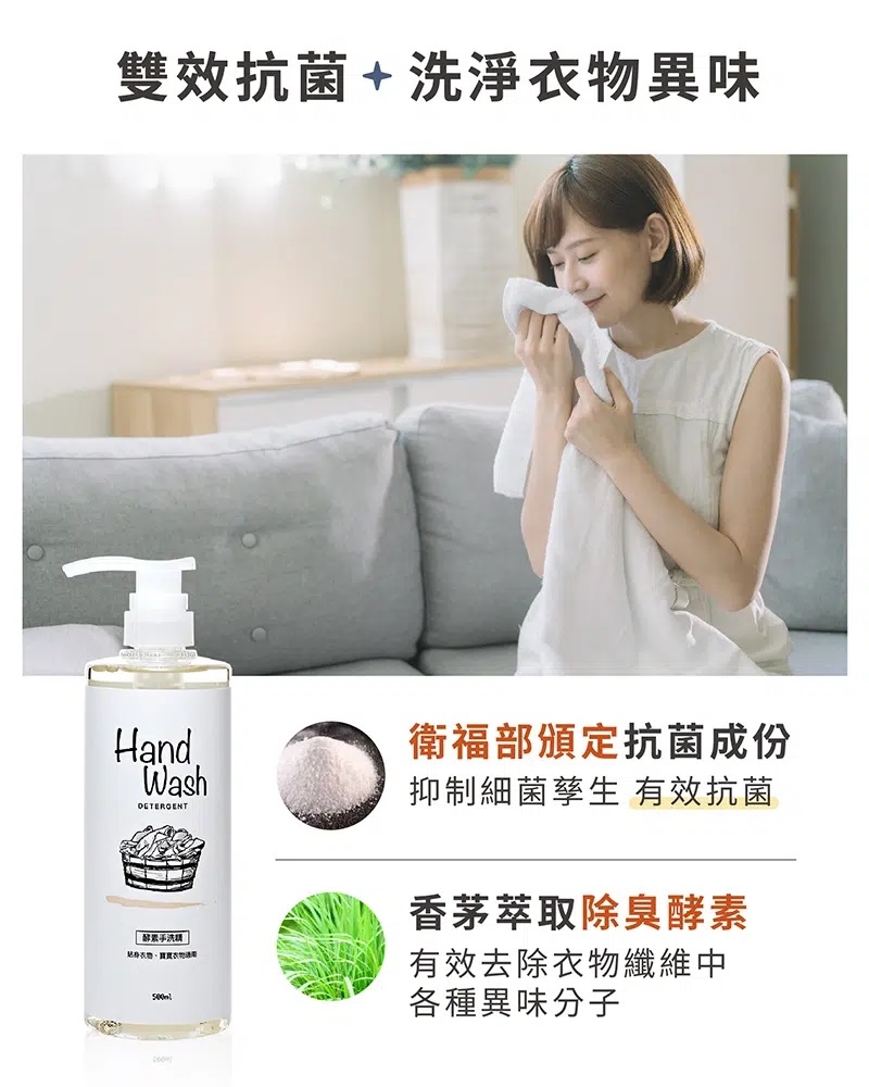 ※手洗精成分中含有蛋白酵素,建議避免清洗羊毛材質衣物。