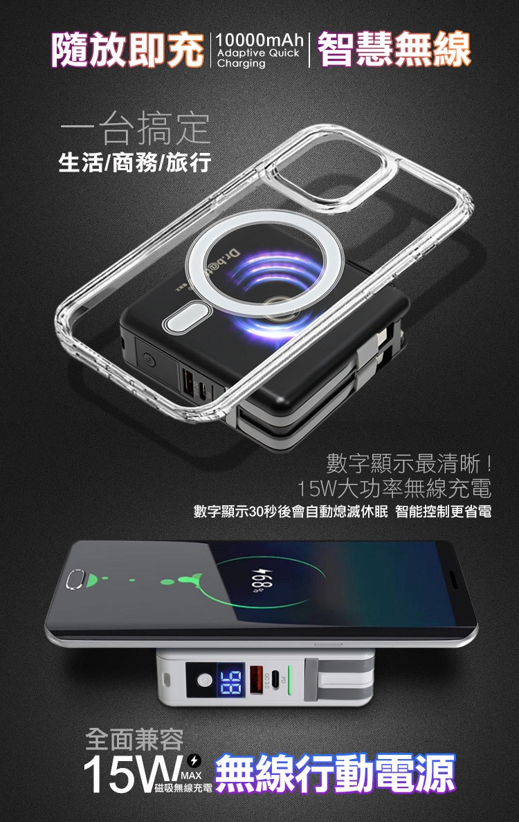 【Dr.b@ttery電池王】MagSafe多功能無線充電+自帶線行動電源+數顯充電頭PD快充(五合一 萬能充Pro