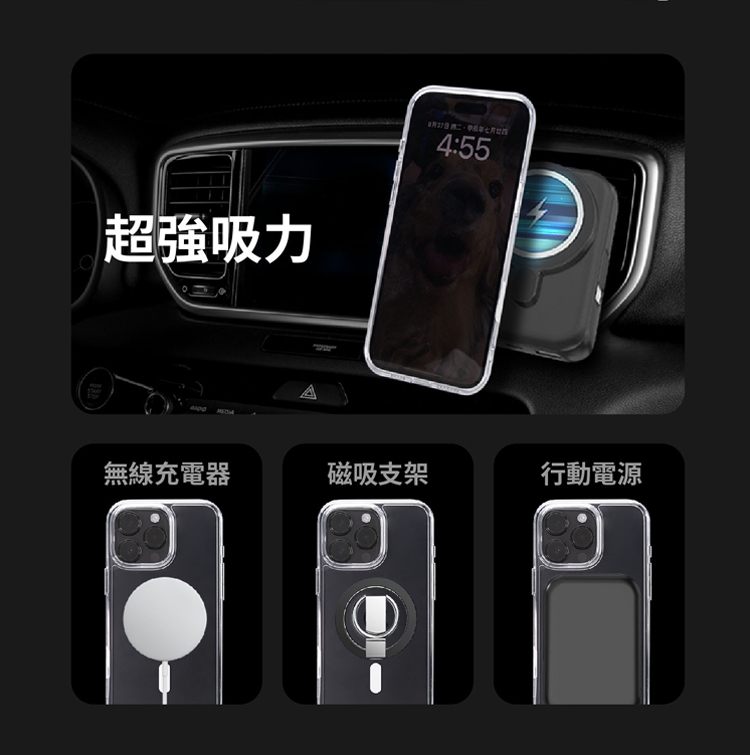 1.5倍強磁吸力設計-內崁1.5倍磁吸圈,更快更輕鬆,即吸無線充電,並安全吸附任何MAGSAFE配件。