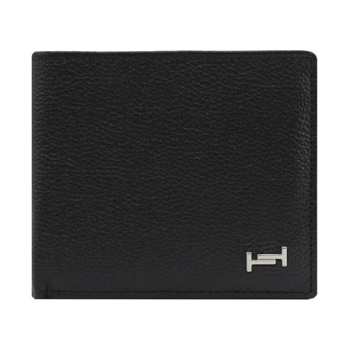 TODS DOUBLE T 質感小牛皮對折零錢短夾.黑