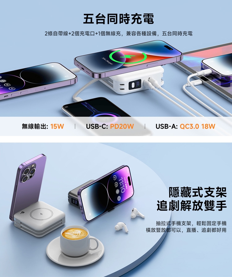 MyStyle第三代 MagSafe 多功能無線充電+自帶線行動電源+數顯充電頭PD快充大功率 +贈i14 Plus磁吸殼