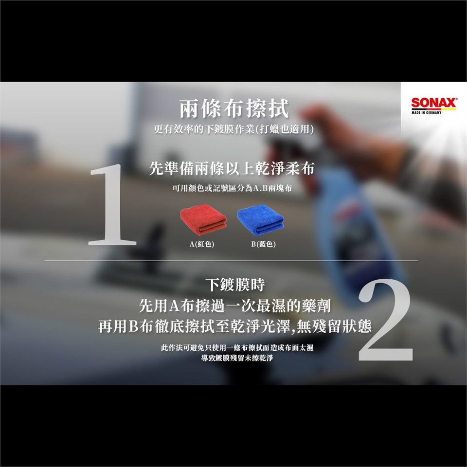 在藥劑未乾前立即以鍍膜巾擦亮即可。