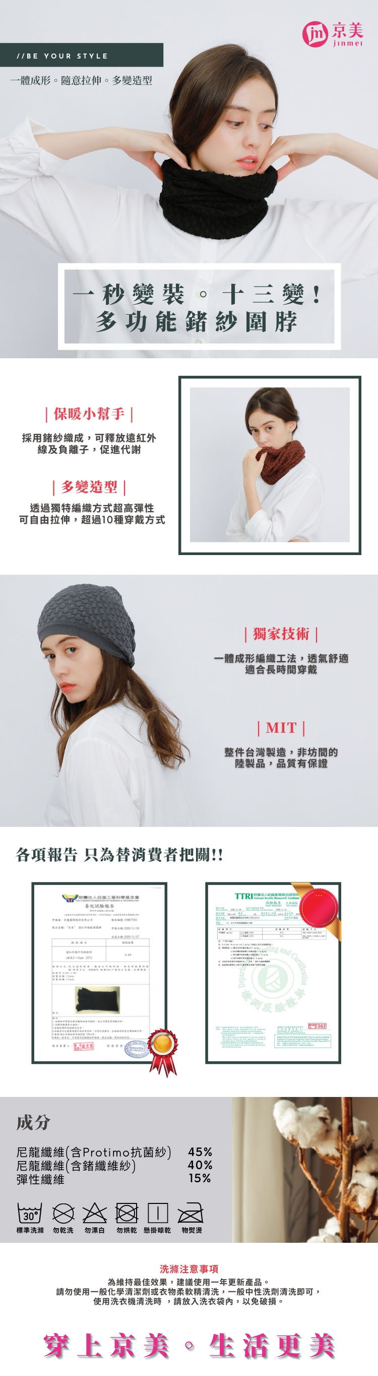 *請使用手洗建議最好使用天然中性清潔劑勿使用漂白水及柔軟精以免破壞織品纖維。