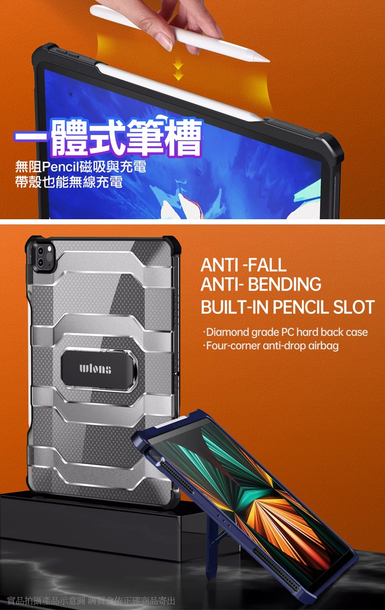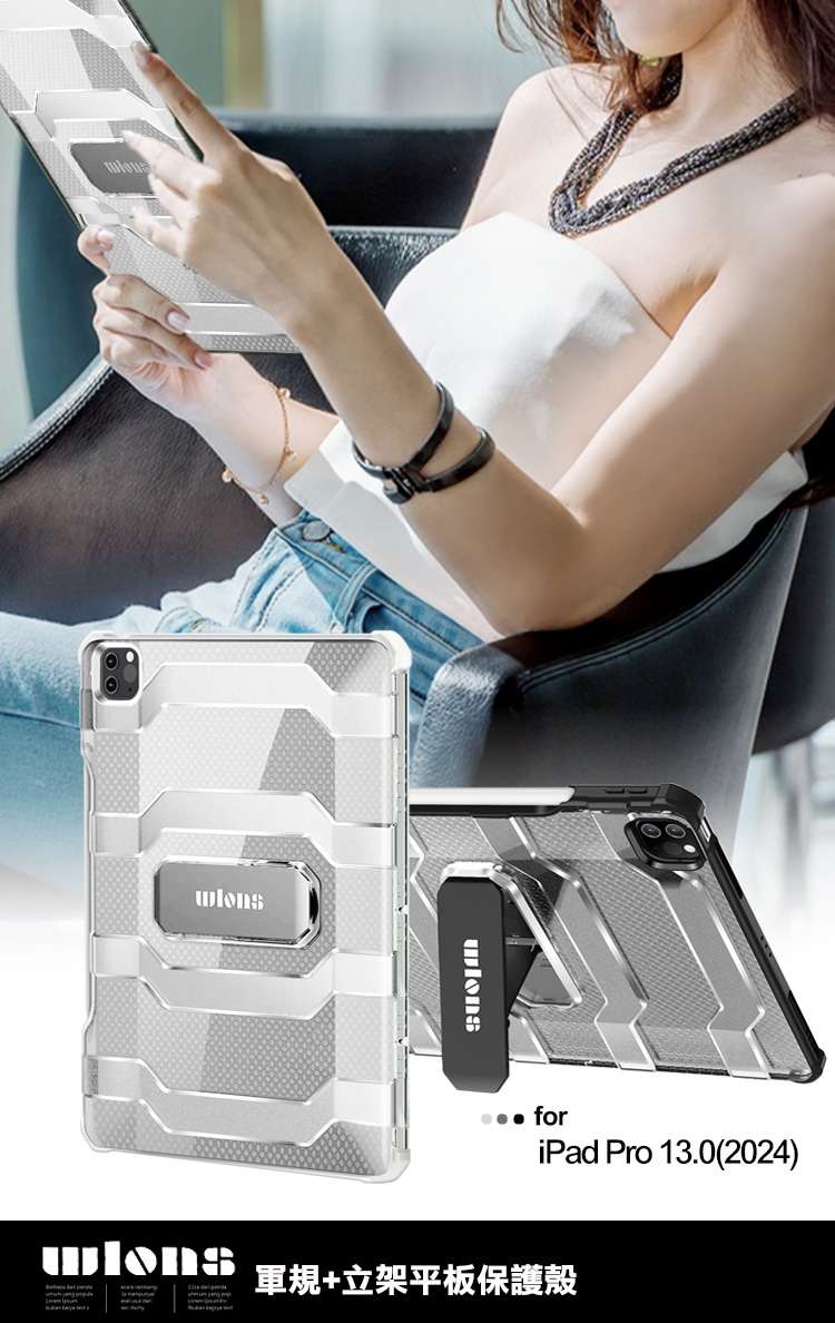 wlons for iPad Pro 13吋(2024) 軍規+立架平板保護殼