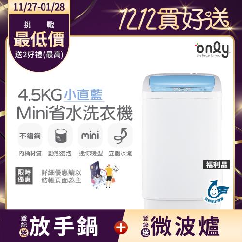 【1/29保證年前到貨~要買要快】only mini全自動4.5KG迷你洗衣機OT05-S09小直藍福利品(省水標章4.5公斤直立式)