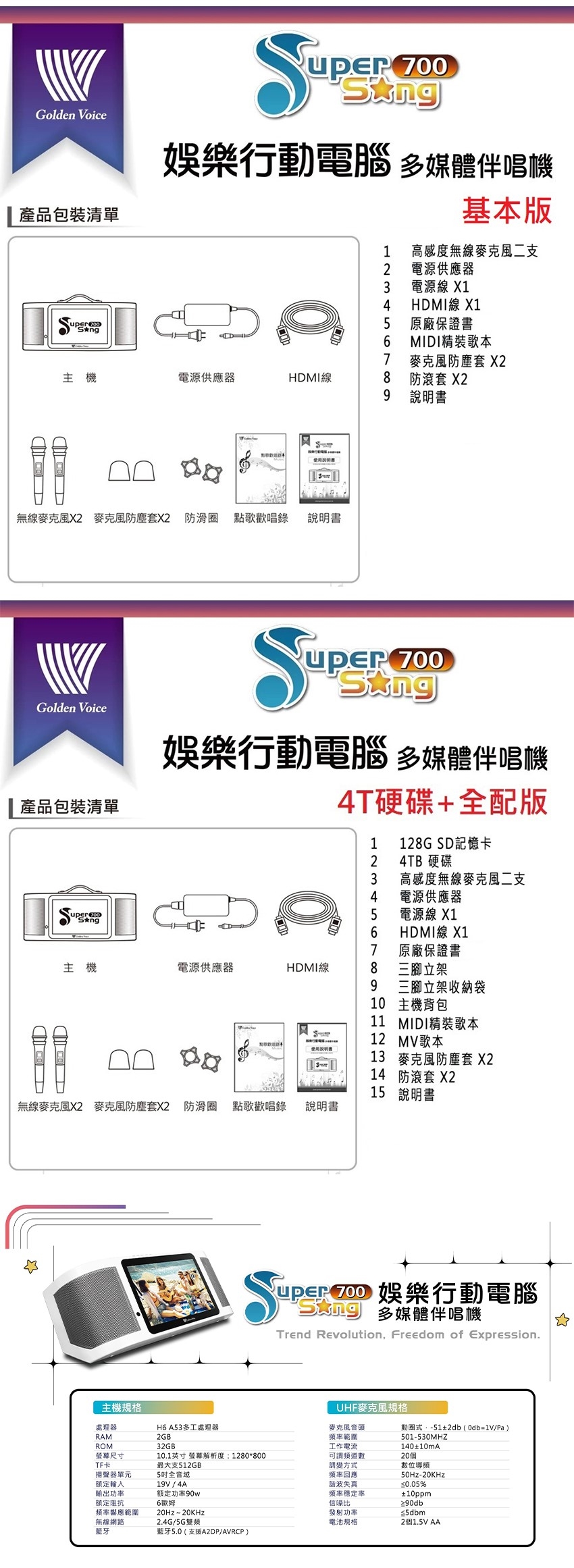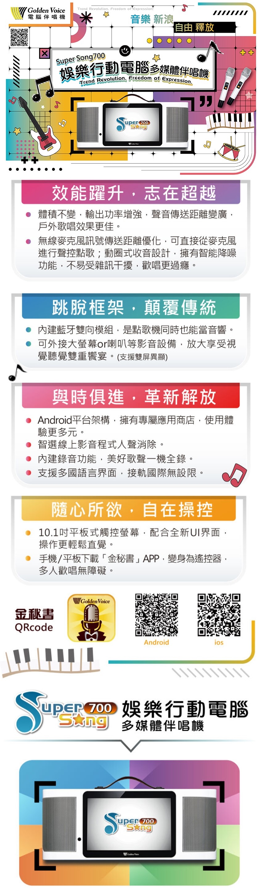 GOLDEN VOICE 金嗓 SUPER SONG 700 休閒攜帶型卡拉OK點歌機 行動KTV伴唱機