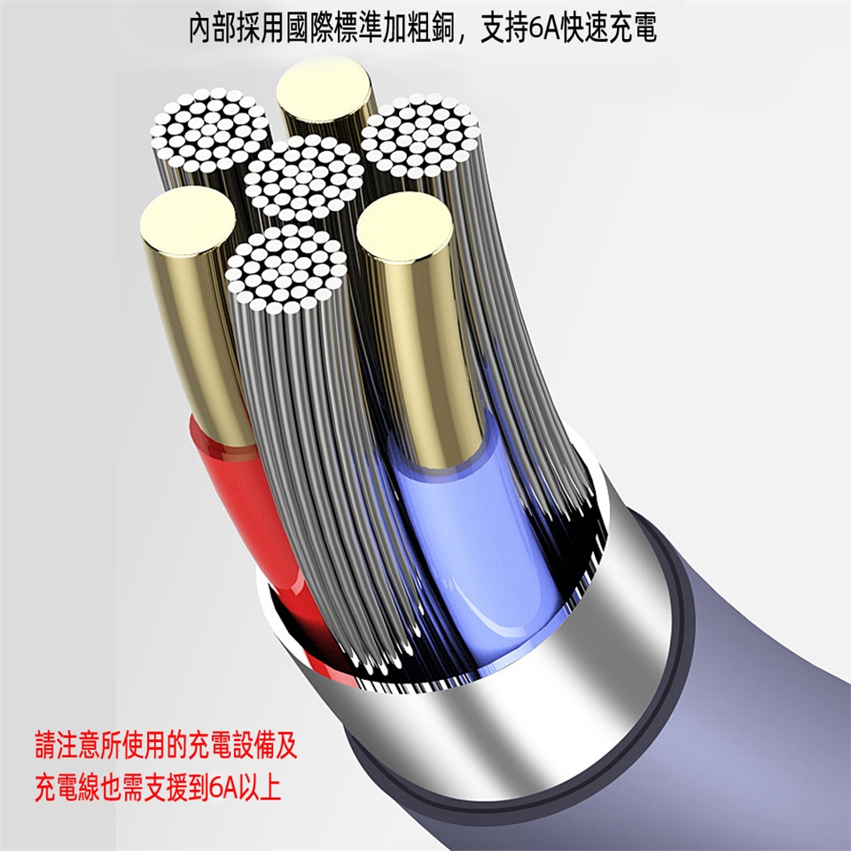 ■內部採用國際標準加粗銅,支持6A快速充電(請注意所使用的充電設備及充電線也需支援到6A以上)
