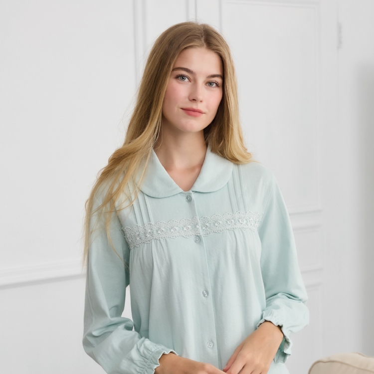 低調淑女100%棉長袖褲裝睡衣